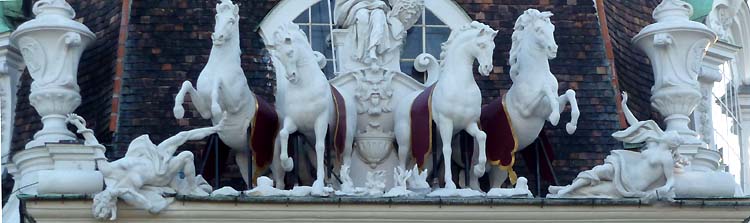 Jene vier am Michaelerplatz entstanden 1893 von verschiedenen Bildhauern. Von links nach rechts: