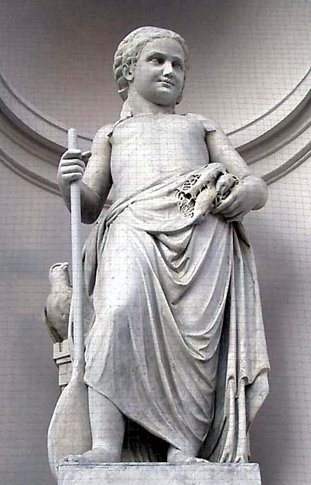 Sein grimmiger Gesichtsausdruck lässt an die schrecklichen Zeiten von Hochwasser und Eisstoß denken, wie sehr litten die Wiener in diesen Zeiten unter dem Fluss. Die Donau zeigte aber auch ganz anders: lieblich sanft - so sanft wie Danubius seine starke Hand zärtlich auf Vindobonas Schultern legt. |