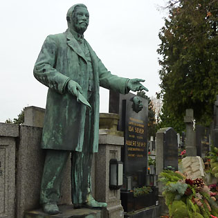 der auf dem Grabmal lebensgroß, in der Pose des Volksredners