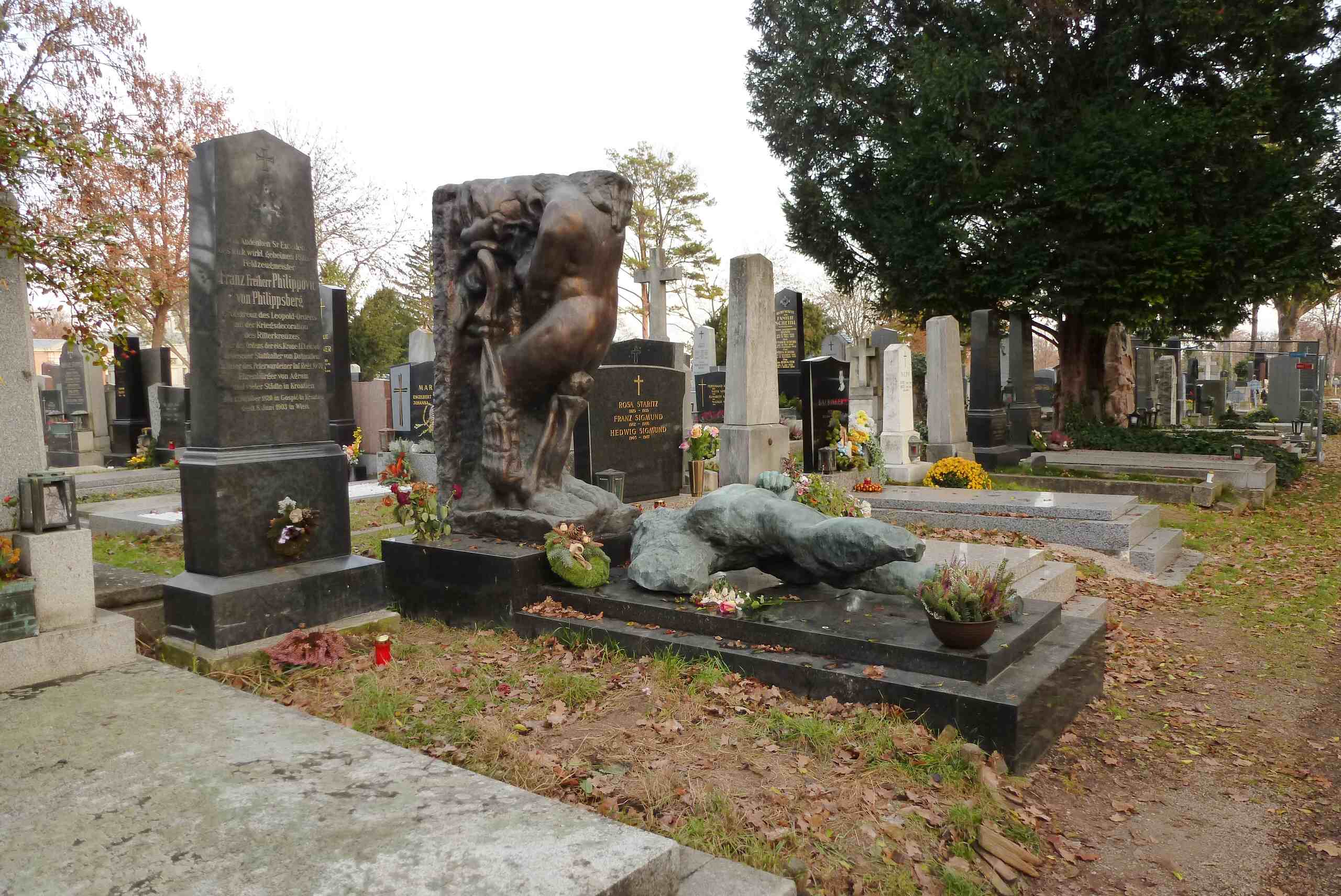 Das Grabmal des Feldzeugmeisters Franz Philippović von Philippsberg (1820 - 1903) liegt an prominenter Stelle, direkt neben dem Bildhauer Alfred Hrdlicka (Grab), unweit des Haupteinganges.