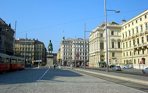 Der Schwarzenbergplatz, links Palais Wertheim (hinter der Bim) |
